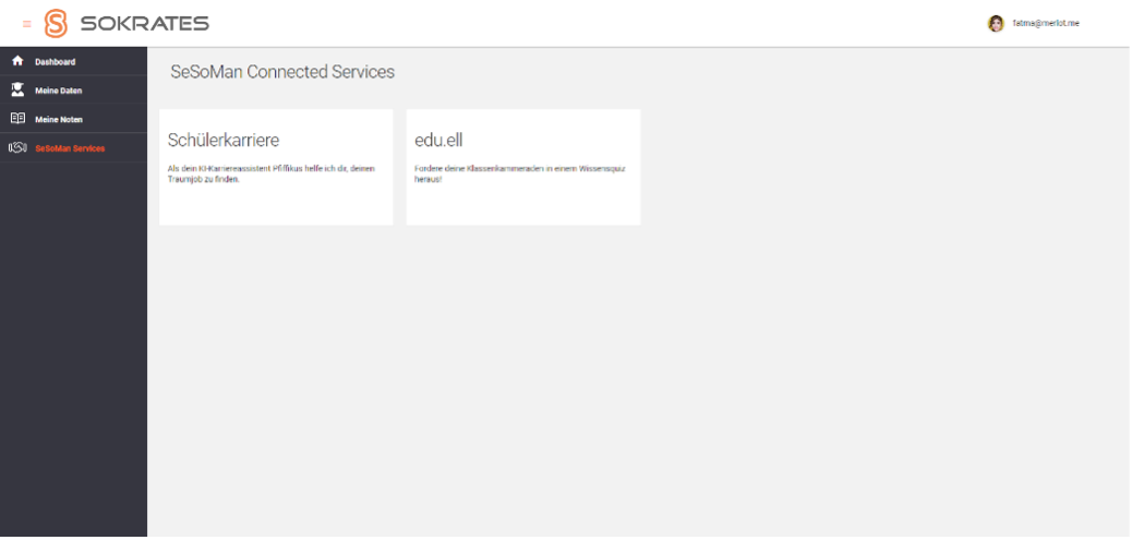 Once logged into Sokrates, Fatma encounters a list of “Connected Services” that can access her data. She sees that the Karriereassistent, is listed as one of these services. Fatma is intrigued by the potential of receiving personalized career recommendations by it and decides to explore the Karriereassistent further.