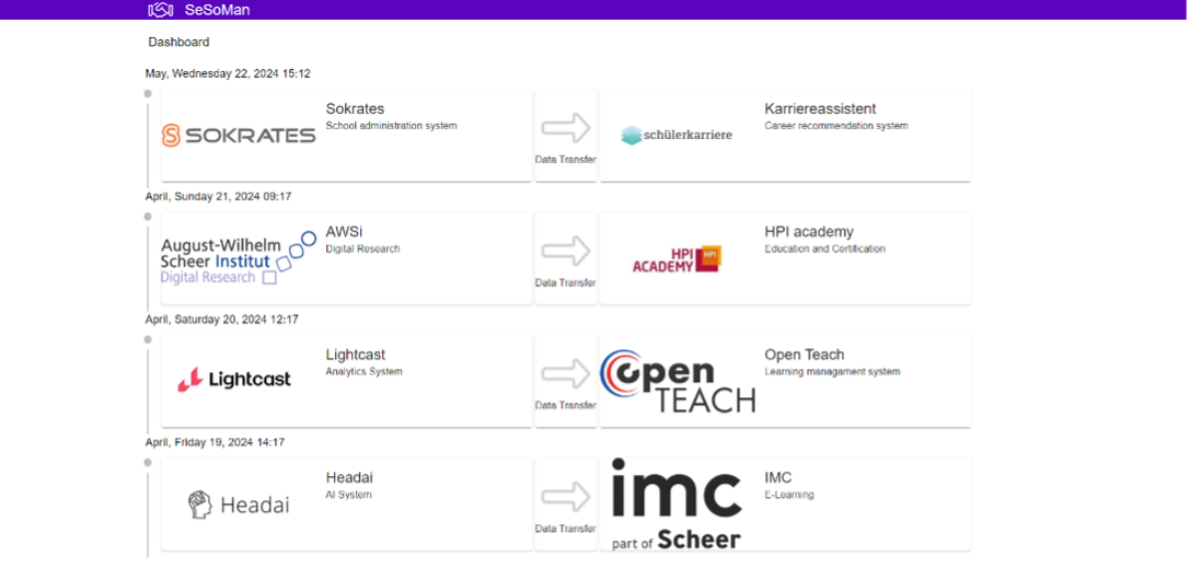 To understand the practical benefits of SeSoMan, let’s follow Fatma, a student navigating the complexities of data sharing between her school’s administrative system “Sokrates” from bit media and a career recommendation service “Karriereassistent” from Schülerkarriere.